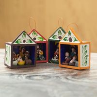 Hand-Painted Retablo Nativity Ornaments Set of 4 'Celebrating the Season' Item ID: 2669908175