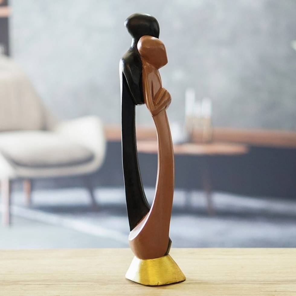 Hand-Painted Romantic Sese Wood Sculpture of Couple 'Ghanaian Lovers' Item ID: 2671805282