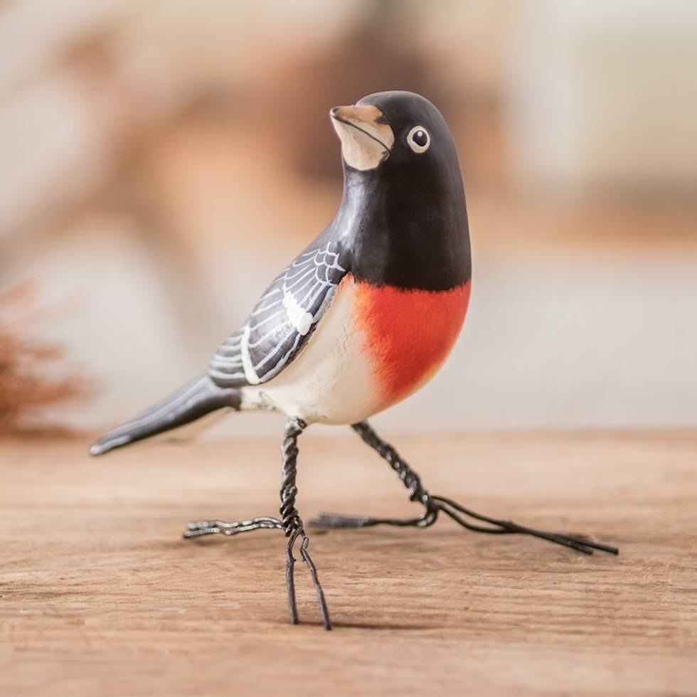 Hand-Painted Rose-Breasted Grosbeak Bird Ceramic Figurine 'Rose-Breasted Grosbeak' Item ID: 2671771461