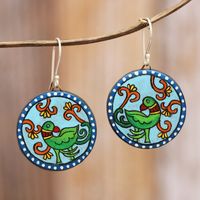 Hand-Painted Round Parakeet Ceramic Dangle Earrings 'Indian Parakeet' Item ID: 2671786816