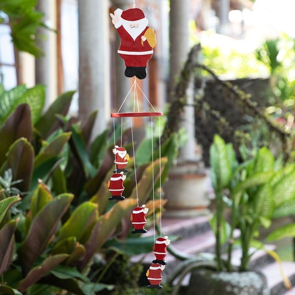 Hand-Painted Santa-Themed Albesia Wood Mobile from Bali 'Waving Santa' Item ID: 2671670992