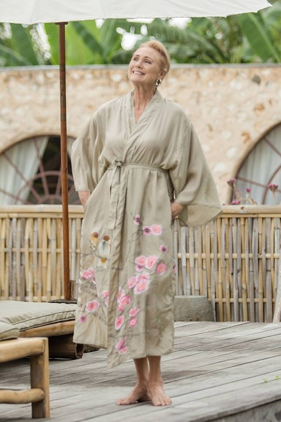 Hand-Painted Silk Robe with Floral Motif 'Sakura Blossoms' Item ID: 2671820941