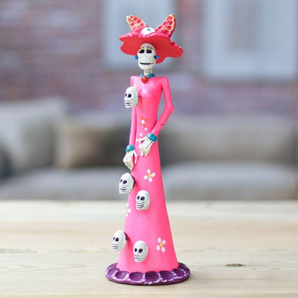 Hand-Painted Skull Lady Catrina Ceramic Sculpture in Pink 'Lady Catrina in Pink' Item ID: 2671807797
