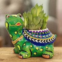 Hand-Painted Small Turtle Ceramic Flower Pot from Guatemala 'Mountain Turtle' Item ID: 2669934789