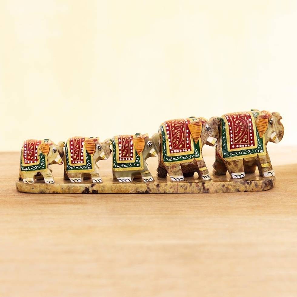 Hand Painted Soapstone Elephant Statuette 'Single File' Item ID: 2671789340