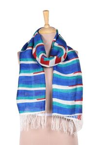 Hand-Painted Striped Silk Wrap Scarf from India 'Harmonious Stripes' Item ID: 2671791052