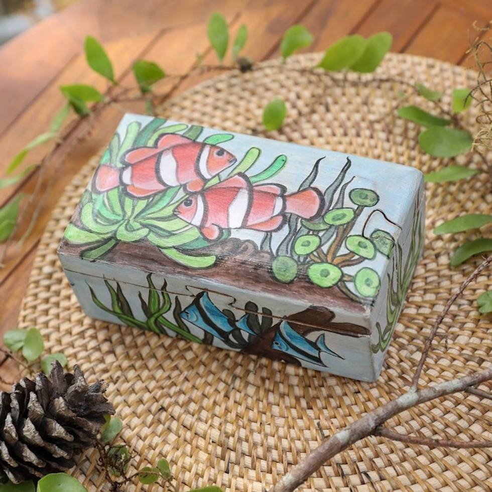 Hand-Painted Suar Wood Decorative Box with Marine Scene 'Secret Ocean' Item ID: 2669910062