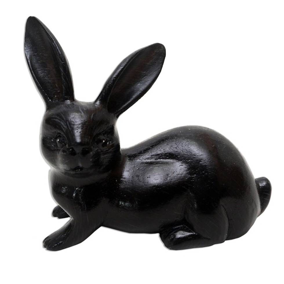 Hand Painted Suar Wood Rabbit Figurine 'Wise Rabbit in Black' Item ID: 2671745072