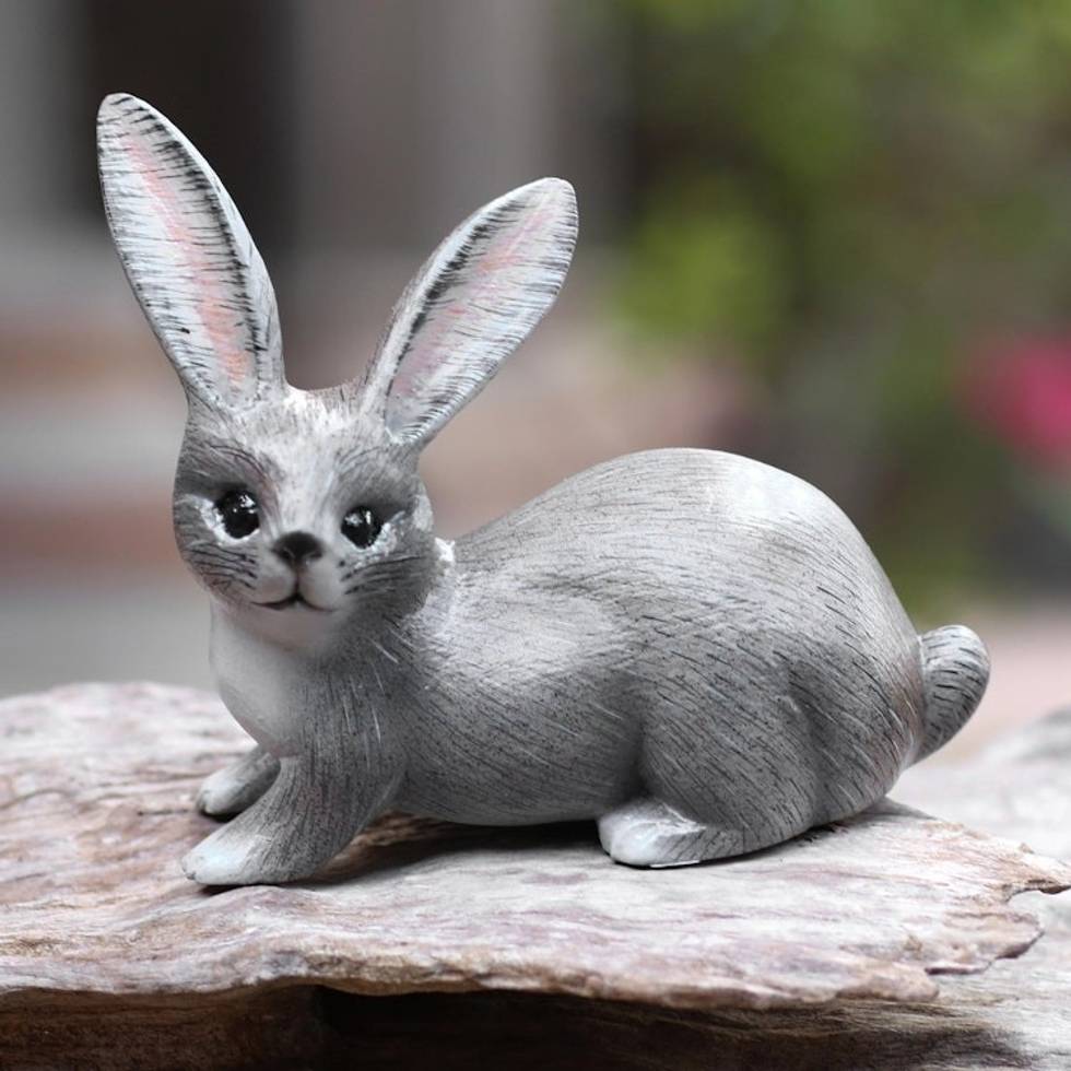 Hand Painted Suar Wood Rabbit Figurine 'Wise Rabbit in Grey' Item ID: 2671746548