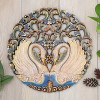 Hand-Painted Swan-Themed Suar Wood Relief Panel from Bali 'Swan Glory' Item ID: 2671764778