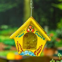 Hand-Painted Talavera Ceramic Bird Feeder in Yellow 'Goldenrod Arcadia' Item ID: 2671640085