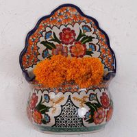 Hand-Painted Talavera-Style Ceramic Wall Planter from Mexico 'Bouquet Display' Item ID: 2676646841