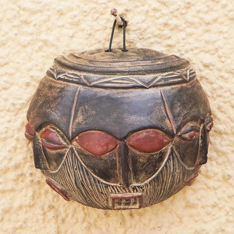 Hand-Painted Traditional Black and Red African Calabash Mask 'Trinity' Item ID: 2671805442