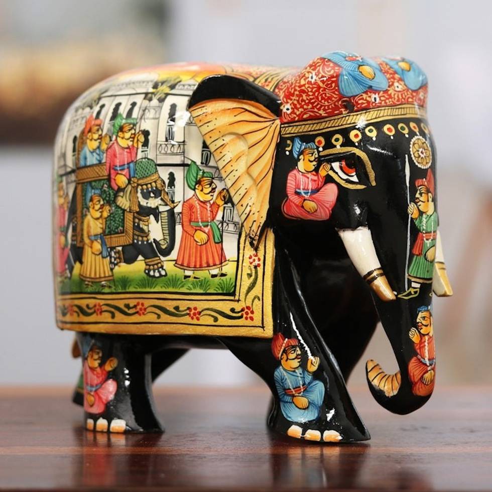 Hand-Painted Traditional Black Elephant Sculpture from India 'King's Procession' Item ID: 2671625766