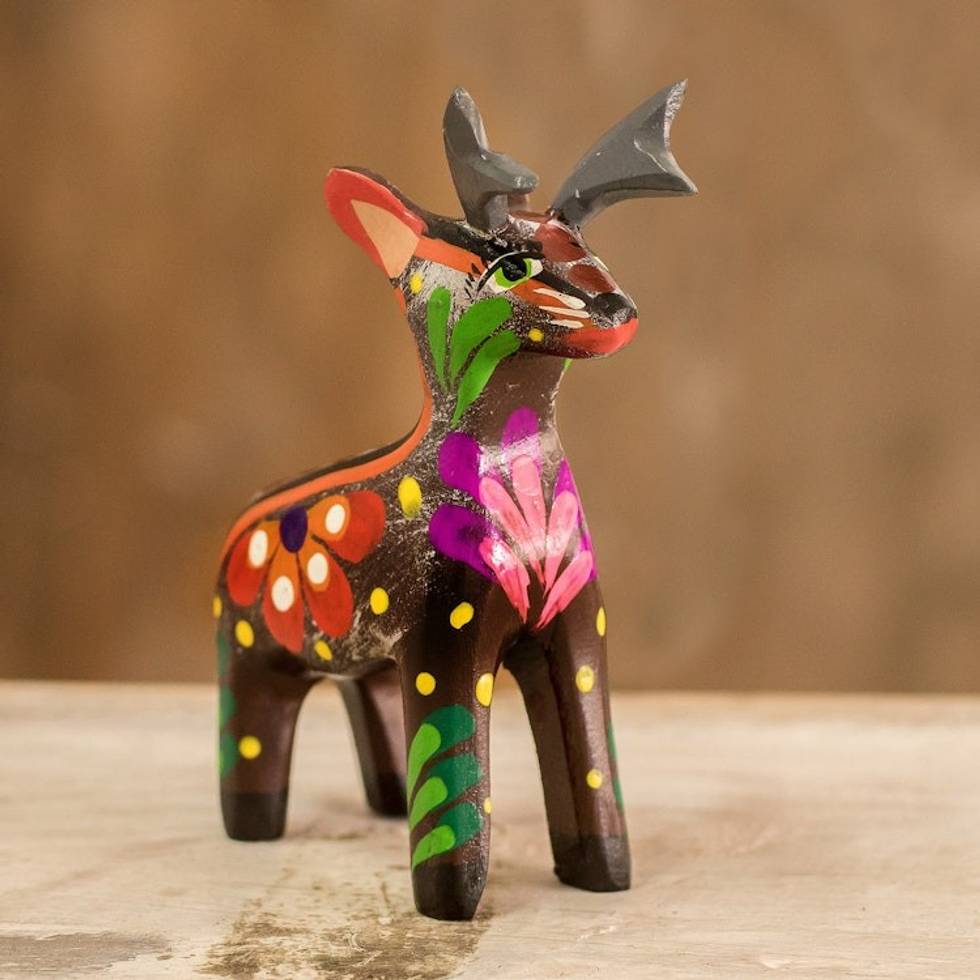Hand-Painted Tropical Bird Wooden Figurine from Guatemala 'Deserving Deer' Item ID: 2671771695