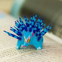 Hand-Painted Wood Alebrije Porcupine Figurine in Blue 'Cute Porcupine in Sky Blue' Item ID: 2671638984