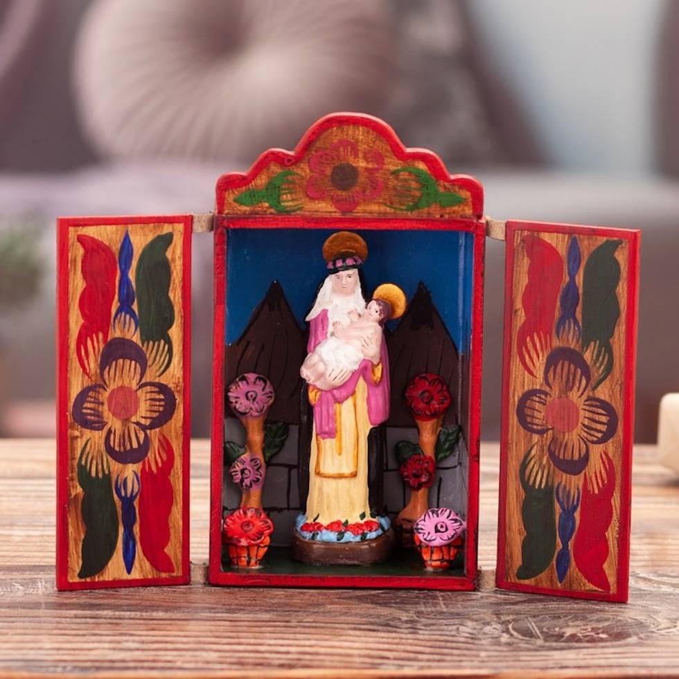 I bought the first one for myself as a confirmation gift because one of our Deacons, in a class for new Catholics, said every Catholic home must have a few things - one of them was a statue or photo or painting, etc., of our Blessed Mother Mary. I bought the second for a woman in my Bible study, who is from Peru and just moved into a new home. I bought the third one for my sister, because when she saw a photo of mine, she fell in love with it - not for the religious appeal, but from a folk art perspective - and after looking at many online, I can't agree more. I watched the video of how the artisan makes the retablo and it added even greater value to it. I simply love them. I love the scene behind Mary - the high mountains, and the flowers, in a wooden box with doors. I mounted mine on a wall in my home office and see it from where I sit. I'm buying the next one as a thank you gift for a close friend who I will be visiting in a few weeks.