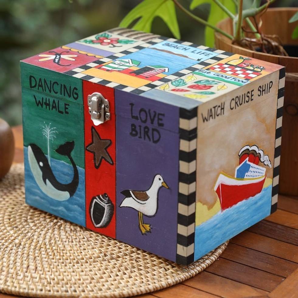 Hand-Painted Wood Decorative with Box Toggle Latch Closure 'Coastal Life' Item ID: 2669891828