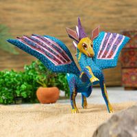 Hand Painted Wood Flying Horse Alebrije in Teal and Purple 'Zapotec Pegasus' Item ID: 2669932232