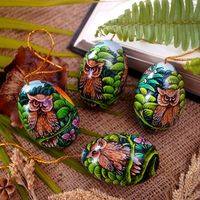 Hand-Painted Wood Ornaments of Birds Set of 4 'Forest of Birds' Item ID: 2671734477