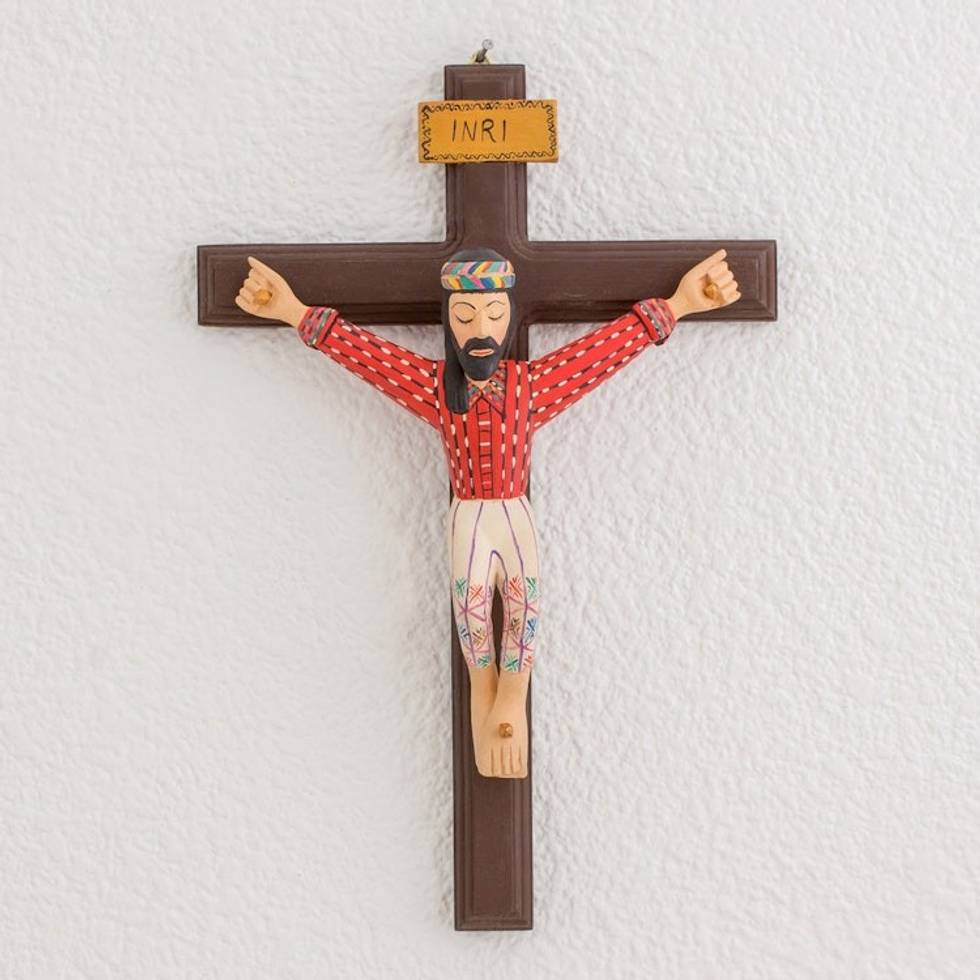 Hand-Painted Wood Wall Cross from Guatemala 'Christ's Sacrifice' Item ID: 2671626931