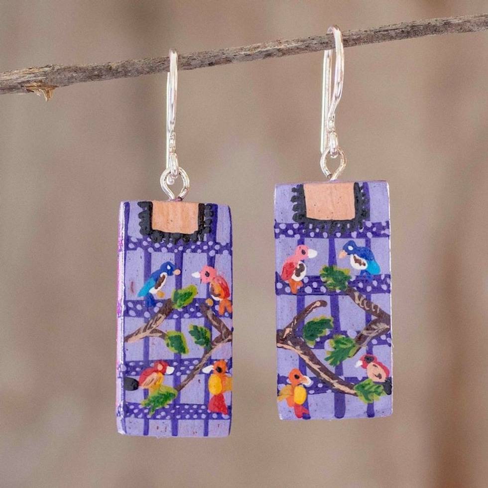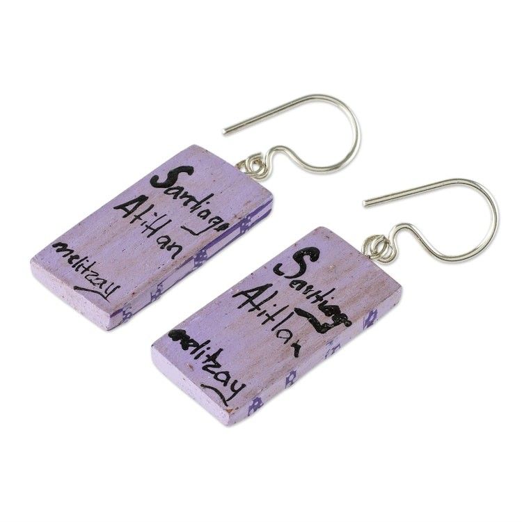 Hand Painted Wooden Earrings 'Santiago Atitln' Item ID: 2671776673