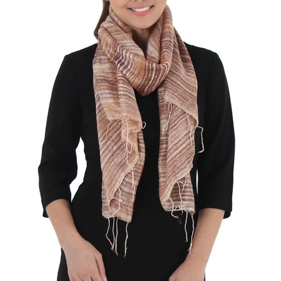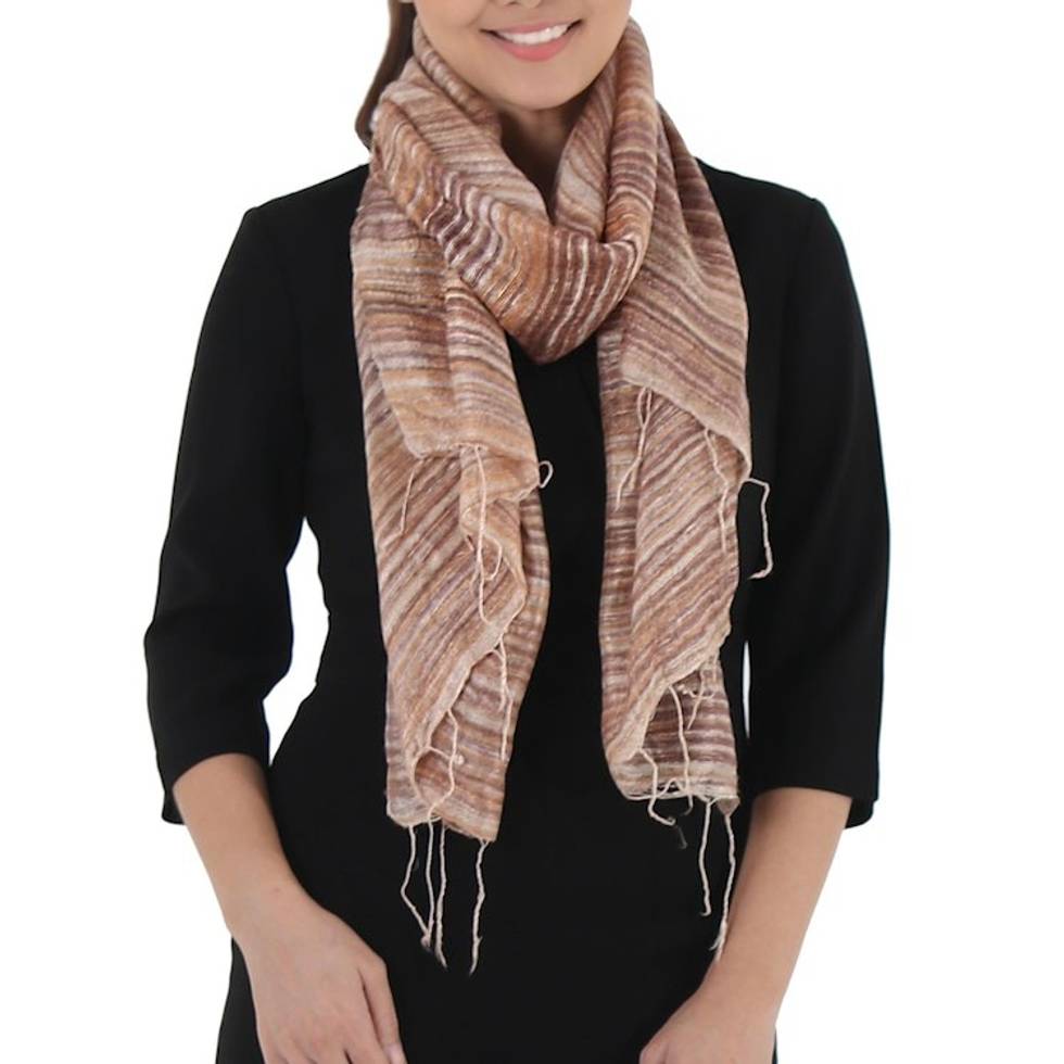 Hand Spun Silk Brown and Orange Scarf from Thailand 'Brown Iridescence' Item ID: 2671801851