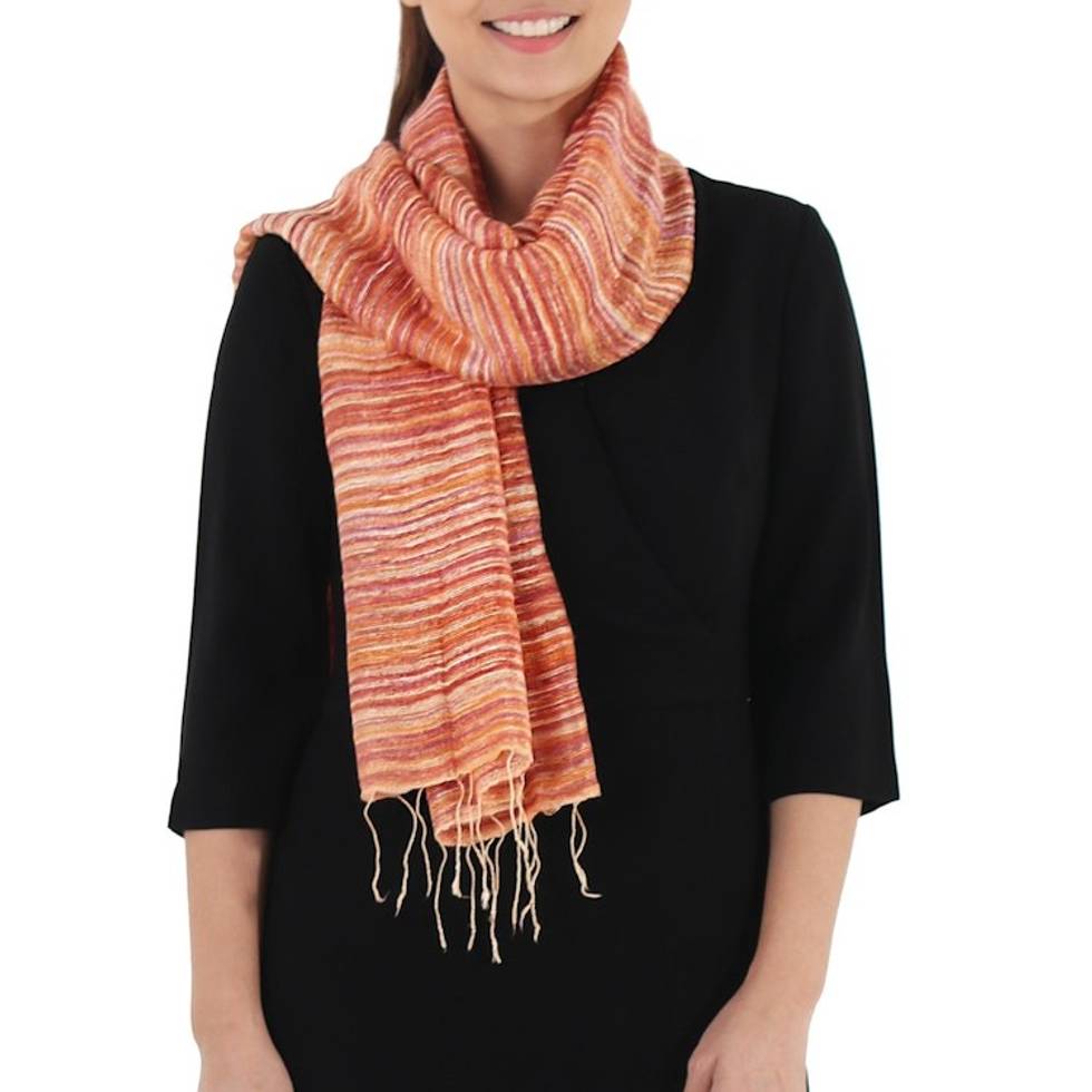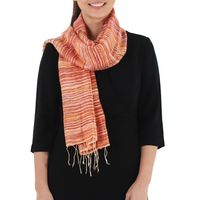 Hand Spun Silk Scarf Woven in Orange Yellow and Red 'Orange Iridescence' Item ID: 2669897537