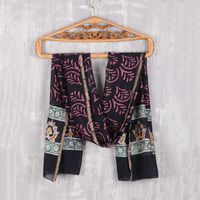 Hand Stamped Batik Shawl in NavyMulticolor 'Avanti Legacy' Item ID: 2671789275