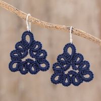 Hand-Tatted Dangle Earrings in Indigo from Guatemala 'Petal Essence in Indigo' Item ID: 2671776677