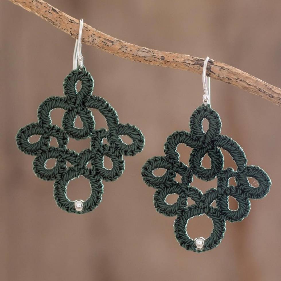 Hand-Tatted Dangle Earrings in Viridian from Guatemala 'Viridian Lace' Item ID: 2671776882