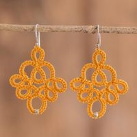 Hand-Tatted Dangle Earrings in Yellow from Guatemala 'Yellow Lace' Item ID: 2671771780