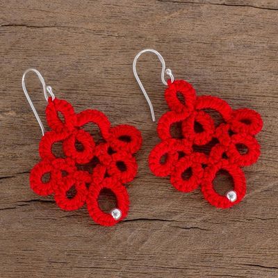"Tatting is a traditional technique that dates back to the 17th century. Often featuring oval and windy shapes, this charming art resembles laces made by hand, adding a lovely accent to any item, like Guatemala's Gladys Pichola creations. This time, she makes floral dangle earrings in a yellow tone, adding glass and sterling silver beads to the design. The accessory also features sterling silver hooks that allow an easy fit."