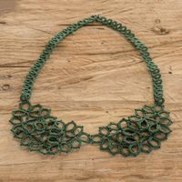 Hand-Tatted Green Statement Necklace with Glass Beads 'Green Breeze' Item ID: 2671772459