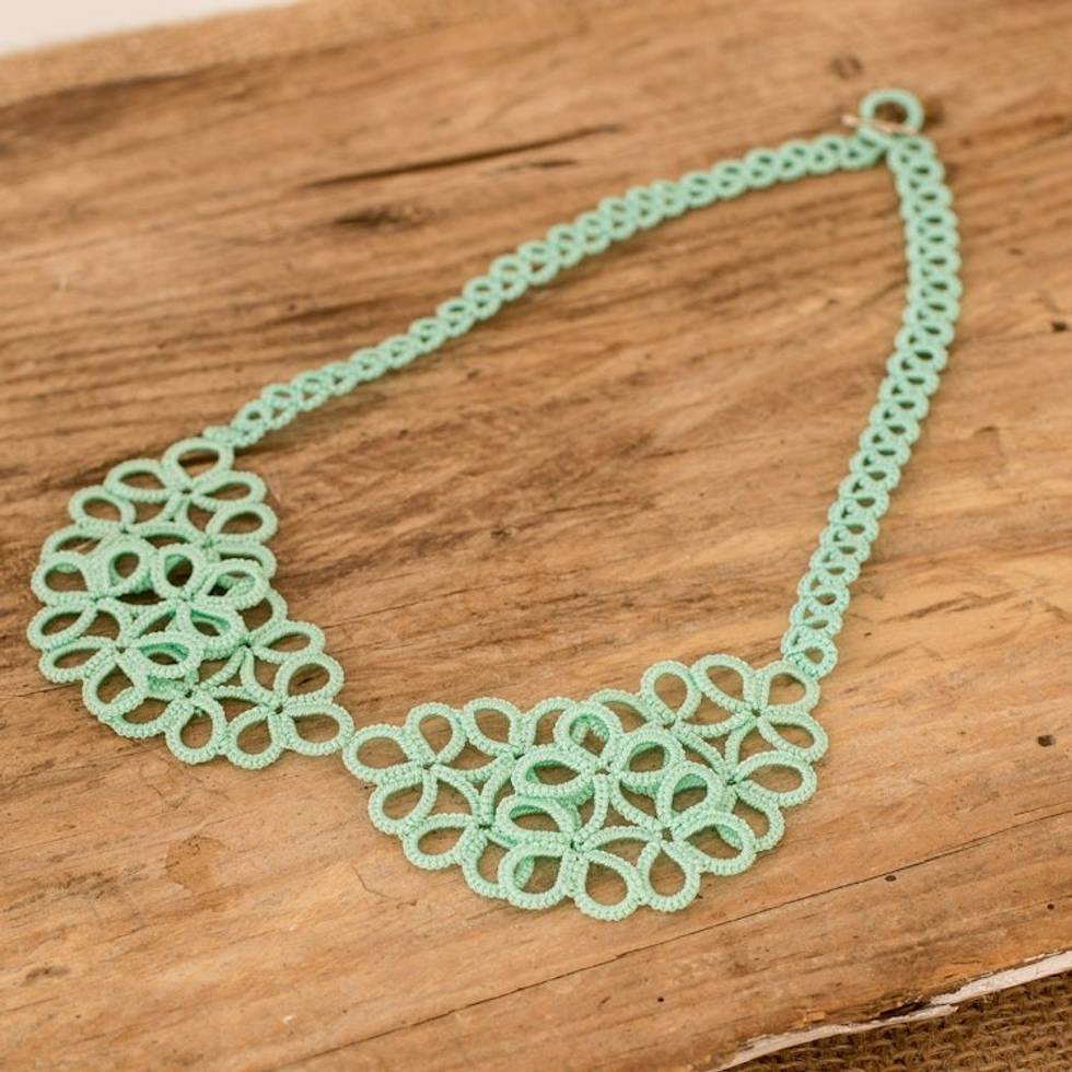 Hand-Tatted Mint Collar Necklace with Sterling Silver Clasp 'Mint Elegance' Item ID: 2671770802