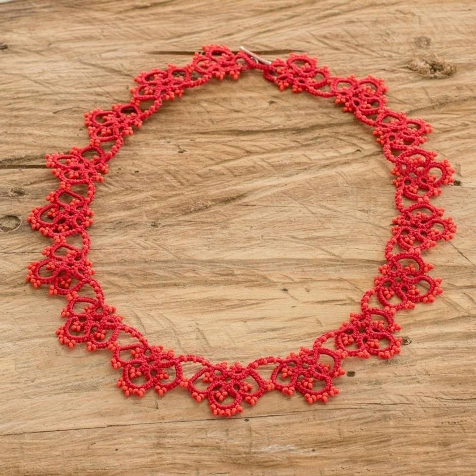 Hand-Tatted Red Collar Necklace with Sterling Silver Clasp 'Intense Winds' Item ID: 2671771605