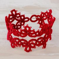 Hand-Tatted Wristband Bracelet in Cherry from Guatemala 'Elegant Flowers in Cherry' Item ID: 2671777448
