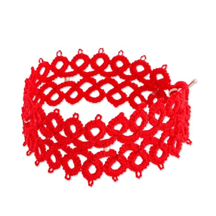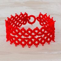 Hand-Tatted Wristband Bracelet in Poppy from Guatemala 'Tracing History in Poppy' Item ID: 2671777832