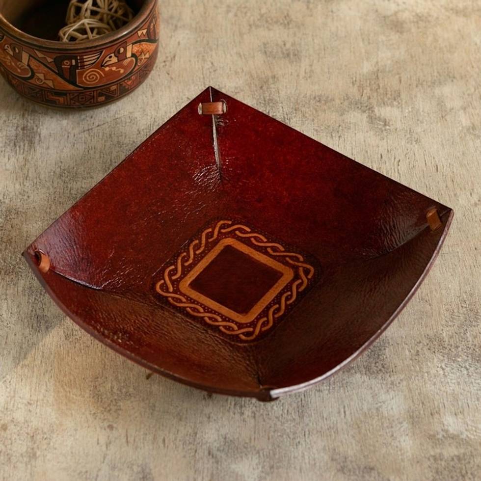 Hand Tooled Leather Celtic Catchall from Peru 'Celtic Magic' Item ID: 2671690399