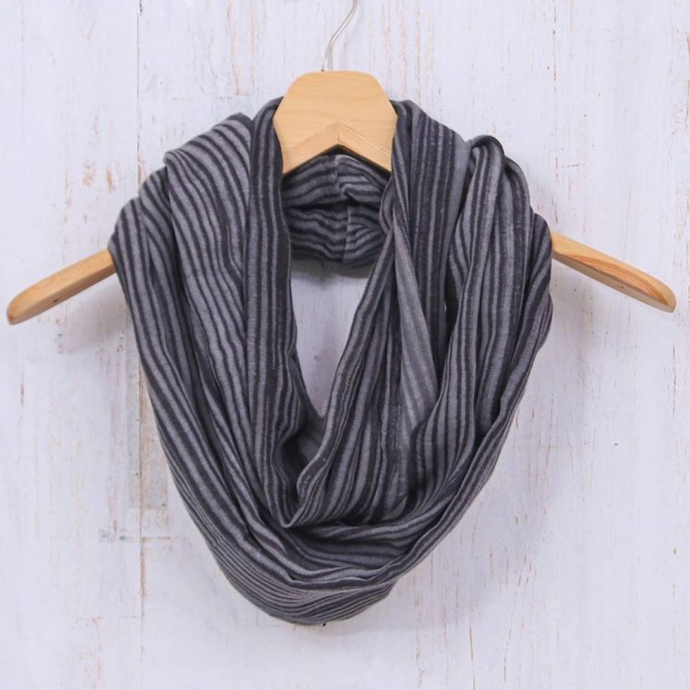 Hand Woven 100 Cotton Infinity Scarf in Black and White 'Smoke' Item ID: 2669897596