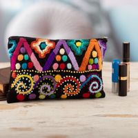 Hand-Woven and Hand-Embroidered Wool Cosmetic Bag in Black 'Andean Party' Item ID: 2671697946
