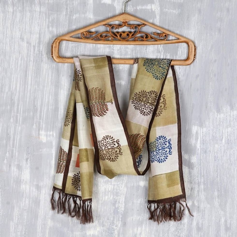 Hand Woven and Hand Painted Silk Scarf 'Bengali Blocks' Item ID: 2671789842