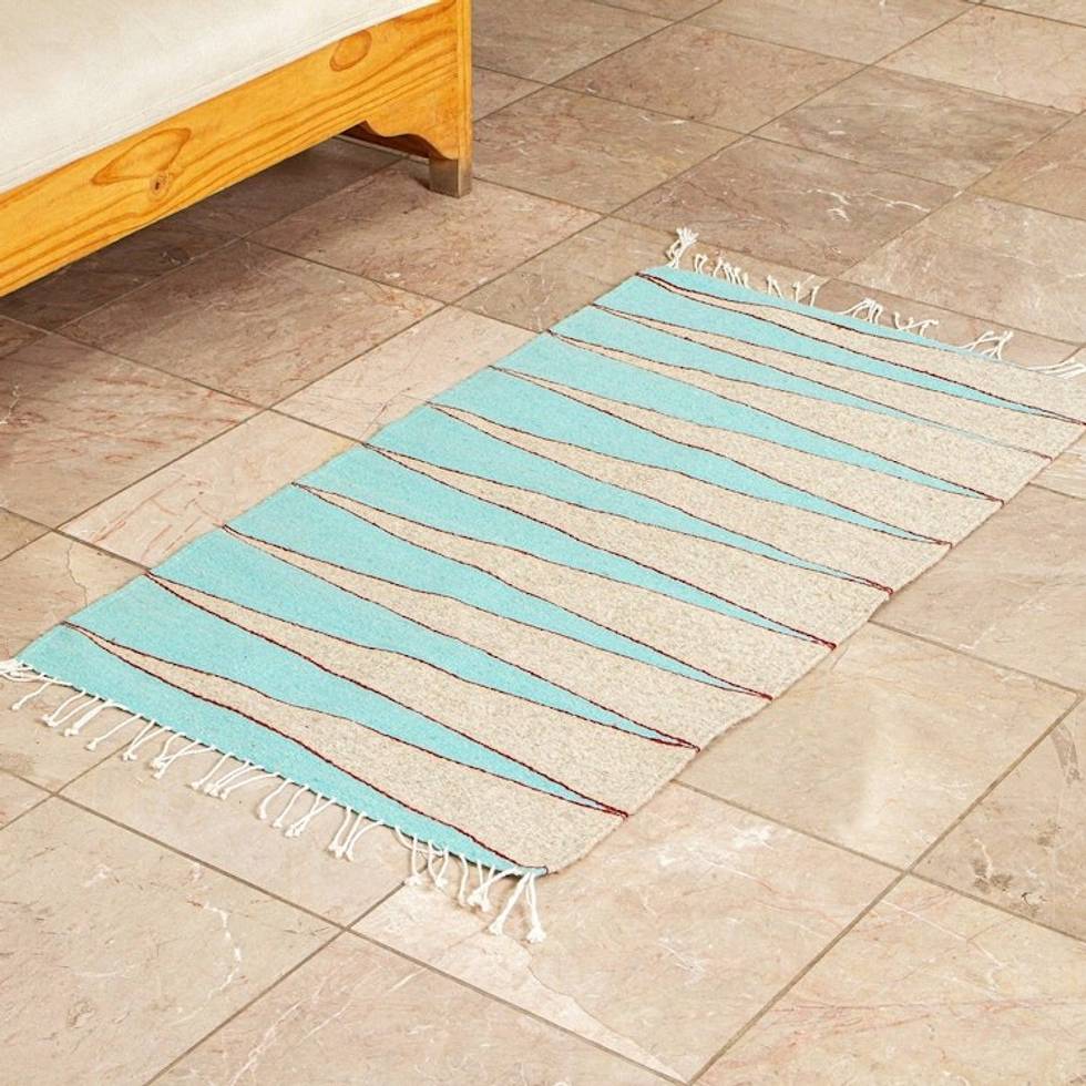 Hand Woven Aqua and Beige Area Rug 2x3 'High Sierras' Item ID: 2671808401
