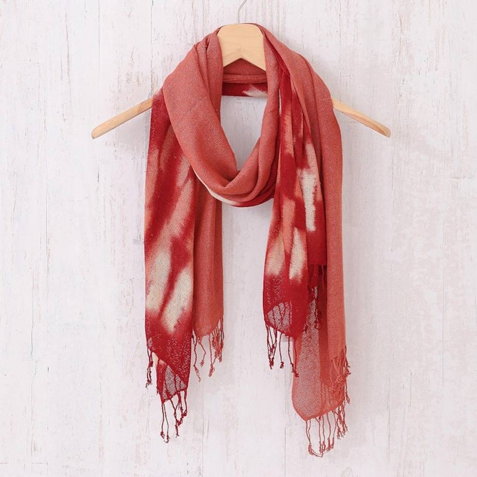 Hand-Woven Batik Silk Scarves in Crimson and Orange Pair 'Cozy Nook' Item ID: 2669894233