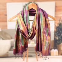Hand-Woven Batik Tie-Dyed 100 Silk Scarf with Fringes 'Colorful Glamor' Item ID: 2671796650