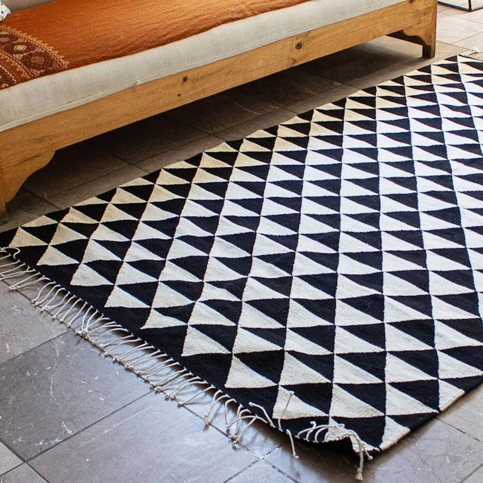 Hand Woven Black and Ecru Wool Area Rug 'Mountains of Teotitlan' Item ID: 2671808252