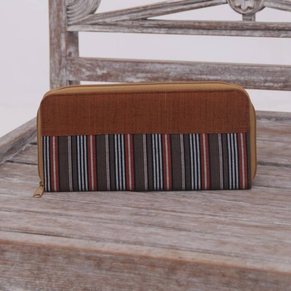 Hand Woven Brown Striped Cotton Wallet with Zipper Closure 'Humble Lurik Brown' Item ID: 2671736509