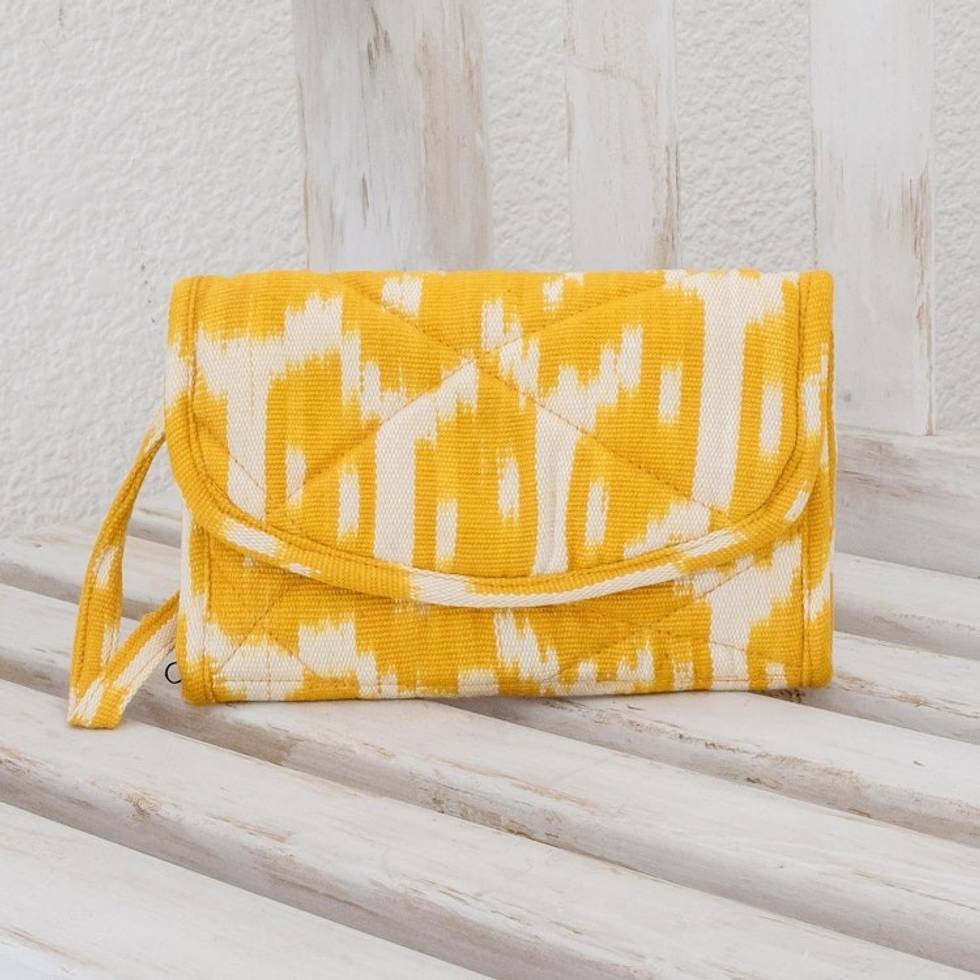 Hand Woven Central American Yellow Cotton Wristlet Bag 'Maya Sunlight' Item ID: 2671777675