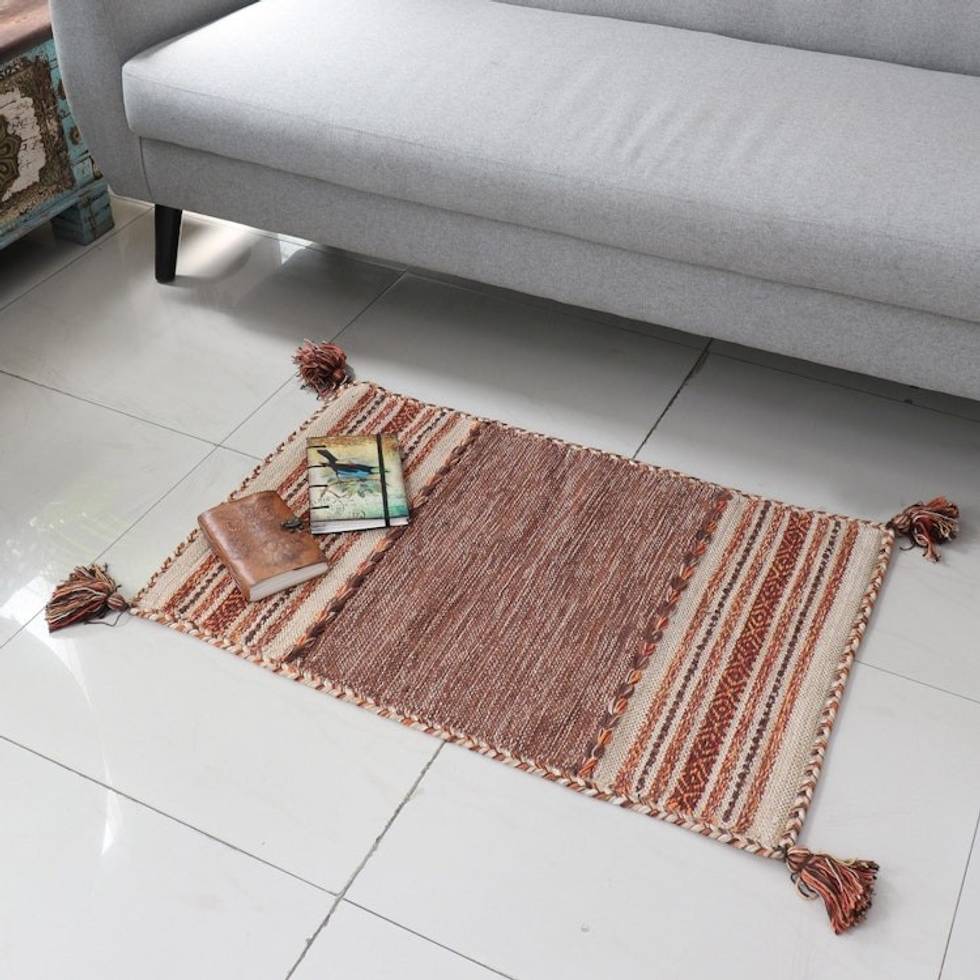 Hand Woven Cotton Geometric Dhurrie Rug from India 2x3 'Delhi Delight in Brown' Item ID: 2671791175