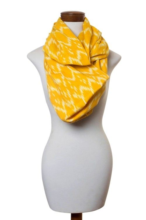 Hand Woven Cotton Infinity Scarf in Bright Yellow and White 'Maya Sunlight' Item ID: 2671778346